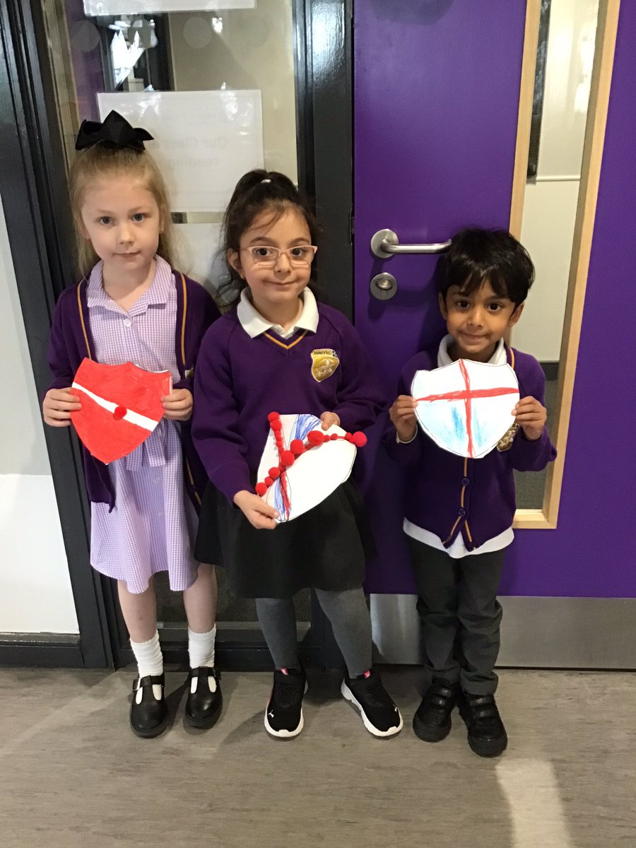 Saint George’s Day 🏴🐉🗡️ The children in Reception created their own shields just like St. George’s. They were inspired by the flags of their heritage and of things and people that are important to them.